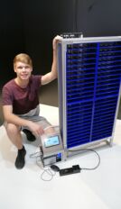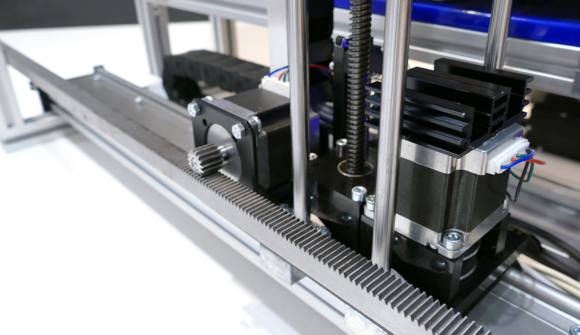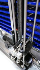 Man kann das Lager mit weiteren Modulen erweitern. Die Lagerboxen werden automatisch mit einer Ausschiebemechanik von hinten herausgeschoben. Das Gewicht jeder Lagerbox wird mittels Wägezellen ermittelt, um die Stückzahl in der jeweiligen Box zu berechnen. Die Art und Stückzahl jeder Ware werden auf einem Touch-Display angezeigt. Über dieses Touch-Display kann man außerdem das Lager verwalten und das gewünschte Produkt ausschieben lassen. Die Ausschiebemechanik bewegt sich mittels Schrittmotoren in vertikaler und horizontaler Richtung. Um die Position zu bestimmen, werden die Schritte des Motors gezählt.