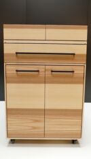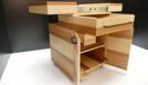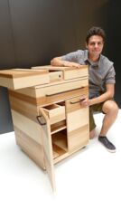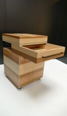 Das von mir entworfene Gesellenstück ist eine moderne Umsetzung einer Kochinsel, welches auf Rollen läuft und beispielsweise in einer kleinen Garçonnière oder einem „Tiny House“ frei platzierbar ist, da es ein platzsparendes Konzept verfolgt. Das Möbel soll ungeahnte Freiheiten in der Küchengestaltung bieten und ein bequemes und mobiles Kochen ermöglichen. In meinem Gesellenstück sind Konstruktion und Design so umgesetzt, dass eine praktische und einfach Handhabung mit der Futuristic Kitchen ermöglicht werden kann.