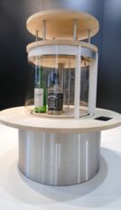 - dem Karussell mit den sechs Flaschen, welche man durch die Auswahl am Display zum Entnahmebereich fahren lassen kann
