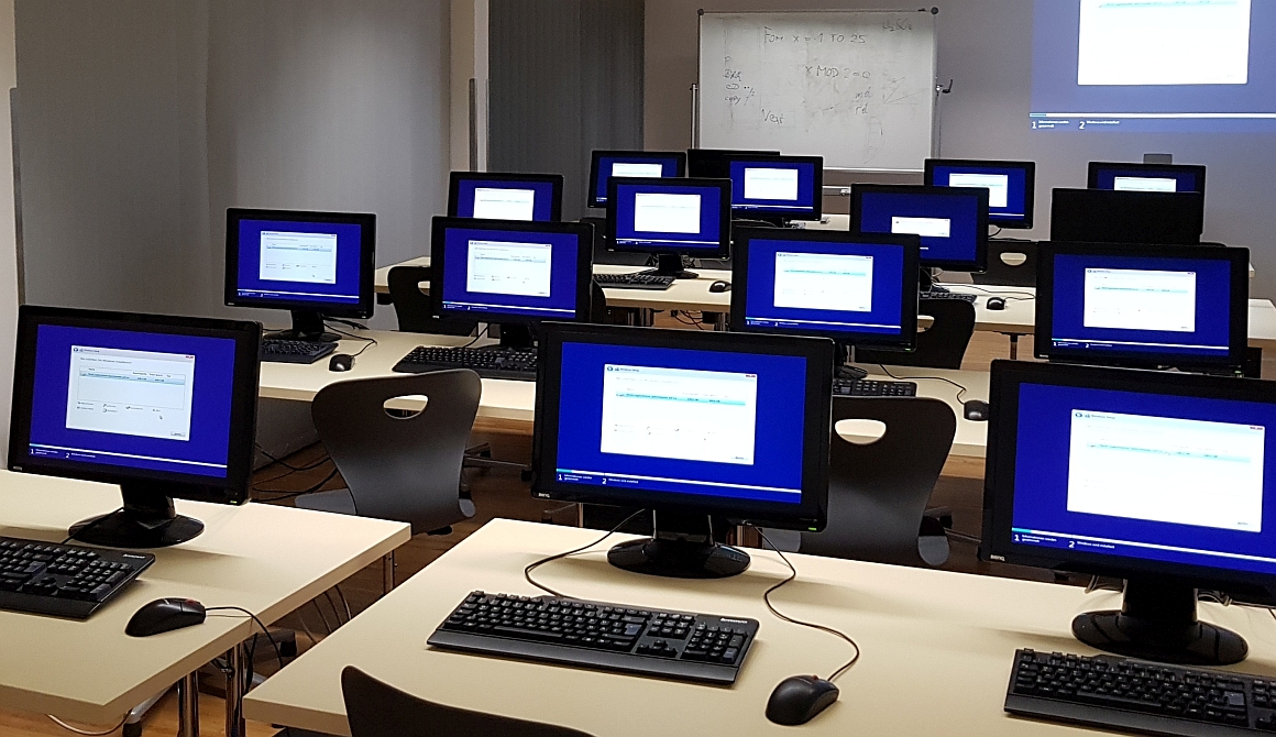 Um alle notwendigen Sicherheitsanforderungen für unsere sehr große Infrastruktur zu gewährleisten, werden dreimal pro Schuljahr alle Arbeitsplatzcomputer mit der neuesten Microsoft Windows Version (Build) versorgt. Gleichzeitig werden in diesem Prozess auch alle installierten Programme und Anwendungen auf den neuesten Stand der Entwicklung und Sicherheit gebracht.