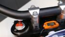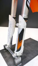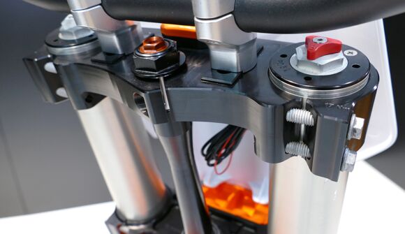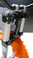 Über das Verbindungselement, die Gabelbrücke, wird die Gabel drehbar am Lenkkopf gelagert. Um eine optimale Funktion zu gewährleisten, wurde die Gabelbrücke aus hochwertigem Flugzeug-Aluminium gefertigt. Die darauf wirkenden Kräfte können durch eine geeignete Flexibilität ausgeglichen werden und die Gabelrohre sind durch eine 100%ige Fluchtung genau an die KTM WP Gabel angepasst.