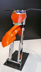 Eine Gabelbrücke ist ein wesentliches Teil eines Motorrads. Diese ist speziell für das KTM-Modell sx125. Sie verbindet die beiden Gabelbeine, zwischen denen das Vorderrad befestigt ist, mit dem Gabelschaft.