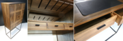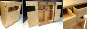 Bei meinem Abschlussprojekt handelt es sich um ein Sideboard in Nuss massiv. Es verfügt über zwei Türen und vier Schubladen, wobei eine der vier Schubladen welche sich hinter der rechten Tür befindet klassisch geführt ist. Hinter der linken Tür bietet ein großer Stauraum, Platz für diverse Ordner oder Schnellhefter. In den 3 Laden lassen sich Bücher oder DVDs unkompliziert verstauen. Die Oberfläche des Sideboards ist geschliffen und in G10 lackiert. Die Türen sind mit einer speziellen Oberfläche beschichtet (Perfect sens). Durch den zeitlosen Stil dieses Möbels lässt es sich gut in jedermanns Büro oder Wohnzimmer einfügen.