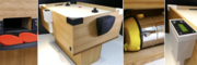 Der automatisierte Getränkemischer mit einem Gehäuse aus massivem Eichenholz ist ideal zum Zubereiten von einfachen Cocktails. Die exakte Portionierung erfolgt durch eine karussellartige Halterung mit sechs Flaschen. Über ein Touchdisplay kann zwischen sechs verschiedenen Getränken ausgewählt werden. Auf Wunsch lassen sich alle Getränke von einem Mixer vermengen. Dabei wird das Glas in die dafür vorgesehene Öffnung gegeben und die Flüssigkeiten werden von einem Edelstahl Rührstab vermengt. Durch ein beleuchtetes Sichtfenster kann jederzeit die Füllmenge der Flaschen eingesehen werden. Durch eine Öffnung auf der Hinterseite des Gerätes können alle Flaschen kurzerhand ausgetauscht und Reinigungstätigkeiten durchgeführt werden.