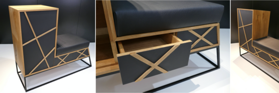 Bei meinem Abschlussprojekt handelt es sich um ein modernes Garderobenmöbel, welches in Eichenholz gefertigt wurde. Dieses Möbel ist besonders für den Eingangsbereich beziehungsweise Vorraum gedacht und beinhaltet genügend Stauraum, um verschiedenste Utensilien, wie Schuhputzmittel, Schuhe und Wertgegenstände zu verstauen. Ein weiteres Highlight dieses Möbel ist die integrierte Sitzbank, welche einen angenehmen und schnellen Schuhwechsel ermöglicht. Durch das eingefräste Muster auf den Fronten soll dem Möbel ein stilvoller Eindruck verliehen werden.
