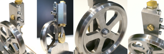 Diese Kolbenpumpe ist eine simple und rein mechanische Maschine, welche bei Betätigung des Antriebsrades Unterdruck erzeugt, um Flüssigkeiten anzusaugen. Durch die kompakte und übersichtliche Bauweise kann dieses Modell die Funktion von Kolbenpumpen sehr gut veranschaulichen. Das Herzstück der Pumpe ist der Kolben, der in einem Zylinder läuft, kombiniert mit einem Zu- und einem Ablauf, die jeweils durch ein Ventil verschlossen sind. Im ersten Takt öffnet sich das Einlassventil und der Kolben saugt das Fördermedium ein. Im zweiten Takt wird das Fördermedium durch den Kolben aus dem Auslassventil gedrückt.
