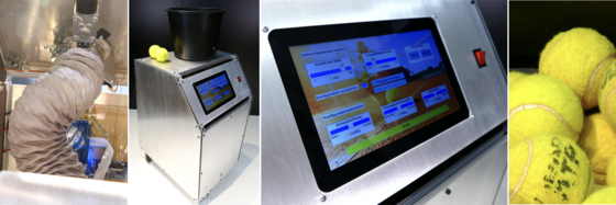Die Tennisballwurfmaschine wirft Tennisbälle über einen Tennisplatz und dient in erster Linie als Trainingspartner. Nachdem beliebig viele Bälle in den Vorratsbehälter gegeben wurden, können am Display über eine grafische Benutzeroberfläche folgende Ballwurfparameter eingestellt werden: die Anzahl der Bälle, das Zeitintervall zwischen den Würfen, der Auswurfwinkel, die Wurfrichtung sowie die Wurfgeschwindigkeit und die Ballrotation. Weiters können mehrere Wurfeinstellungen gespeichert werden, wodurch eine anspruchsvolle Folge der Ballwurfparameter, wie zum Beispiel abwechselnde Würfe zwischen rechts und links mit unterschiedlichen Geschwindigkeiten, möglich ist. Wenn der Vorratsbehälter leer ist oder sich ein Objekt im unmittelbaren Auswurfbereich befindet, wird die Schussfolge abgebrochen und eine Fehlermeldung am Display angezeigt. Die Maschine wird mit zwei Bleiakkus betrieben und kann nach vollständiger Ladung mindestens fünf Stunden verwendet werden.