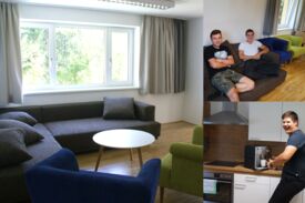 Die Bewohner sind zu Schulbeginn in das Haus eingezogen und finden 10 moderne Doppelzimmer mit eigener Nasszelle und großzügigem Balkon vor. Weiters gibt es für jede Internatsgruppe einen Aufenthaltsbereich mit Küche. Zusätzlich wurden im Untergeschoss Lern- und Aufenthaltsräume für die halbinternen Schüler der 8. und 9. Klasse umgesetzt. Die sonnige Terrasse am Dach des Hauses 9 – welche vom Haus 8 aus begehbar ist – rundet das Angebot für die Schülerinnen und Schüler ab. Somit bieten wir nun allen internen Schülern den gleichen Standard im Internat und wünschen allen einen guten Schulstart und hoffen, dass sie sich in den Räumlichkeiten wohl fühlen.