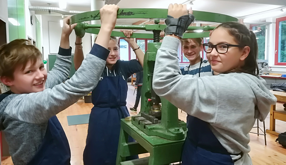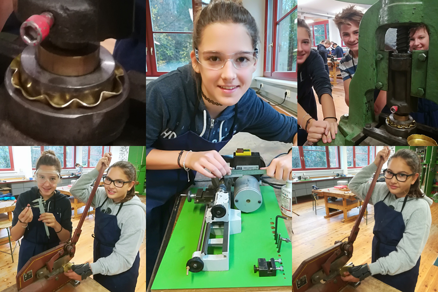 In der dritten Klasse Metallwerken wird mit der Fertigung der Dampfmaschine begonnen. Wir pressen die Deckel für den Kessel, drehen Einfüllstutzen und Einfüllschraube an den Drehbänken. Das Projekt Dampfmaschine umfasst insgesamt ein Jahr. Um die Weihnachtszeit werden wir mit dem Hartlöten beginnen.