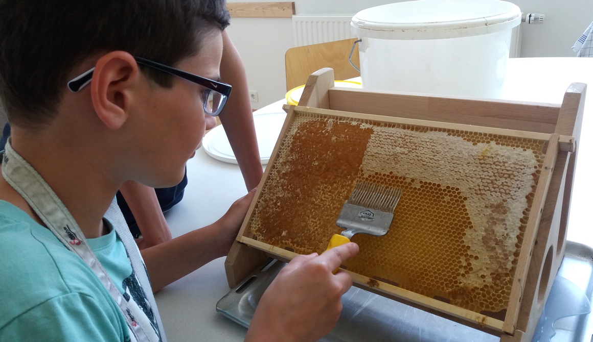 Die Schüler/innen der Werkschulheim-Schulimkerei konnten Ende Mai aus den Bienenvölkern den ersten Honig des heurigen Jahres ernten. Aufgrund der guten Witterung und des üppigen Trachtangebotes haben die Bienen reichlich Nektar eingetragen. Insgesamt wurden ungefähr 40 kg Honig geschleudert, in Gläser abgefüllt und etikettiert. Der Honig wird im weiteren Verlauf an Schüler/innen, Eltern und Lehrer/innen verkauft.