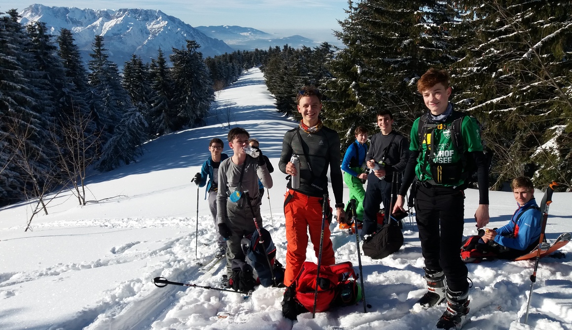 In der Woche vor den Semesterferien fand im Rahmen des Halbinternats eine Skitour auf den Schlenken statt, an der sieben Schüler teilnahmen. Begleitet wurden die Schüler von den Erziehern MMag. Stefan Mayr und Mag. Eberhard Daxner. Am Gipfel durften wir uns über Sonnenschein und angenehme Temperaturen freuen. Auch die Abfahrt war bei Pulverschnee ein voller Genuss.