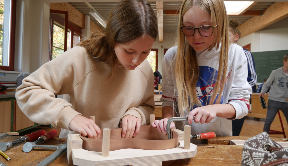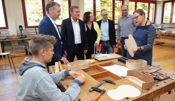 Von den handwerklichen Fertigkeiten der Schüler am Werkschulheim Felbertal überzeugte sich kürzlich Wirtschaftskammerpräsident Manfred Rosenstatter bei einem Lokalaugenschein am Zukunfts-Campus in Ebenau bei Salzburg. Vor allem der Bau von Musikinstrumenten, die die Schüler der 4. Klasse mit einer individuellen Note als Abschlussstück im Unterstufenwerkfach „Holz“ anfertigen, beeindruckte. „Diese Schule ist wirklich einzigartig in Österreich. Ein Gymnasium, bei dem die Schüler nach Abschluss auch eine Berufsausbildung in der Tasche haben, öffnet den jungen Menschen extrem gute Perspektiven“, so Rosenstatter, der auch das Modell „Lehre mit Matura“ der Wirtschaftskammer forciert. „Ein Handwerk zu erlernen, bereichert jede Schulausbildung, denn es bedeutet Flexibilität und Unabhängigkeit auch im Einkommensbereich. Das ist wichtig in einer Zeit, in der vieles einem schnellen Wandel unterzogen ist“, ist Rosenstatter überzeugt.