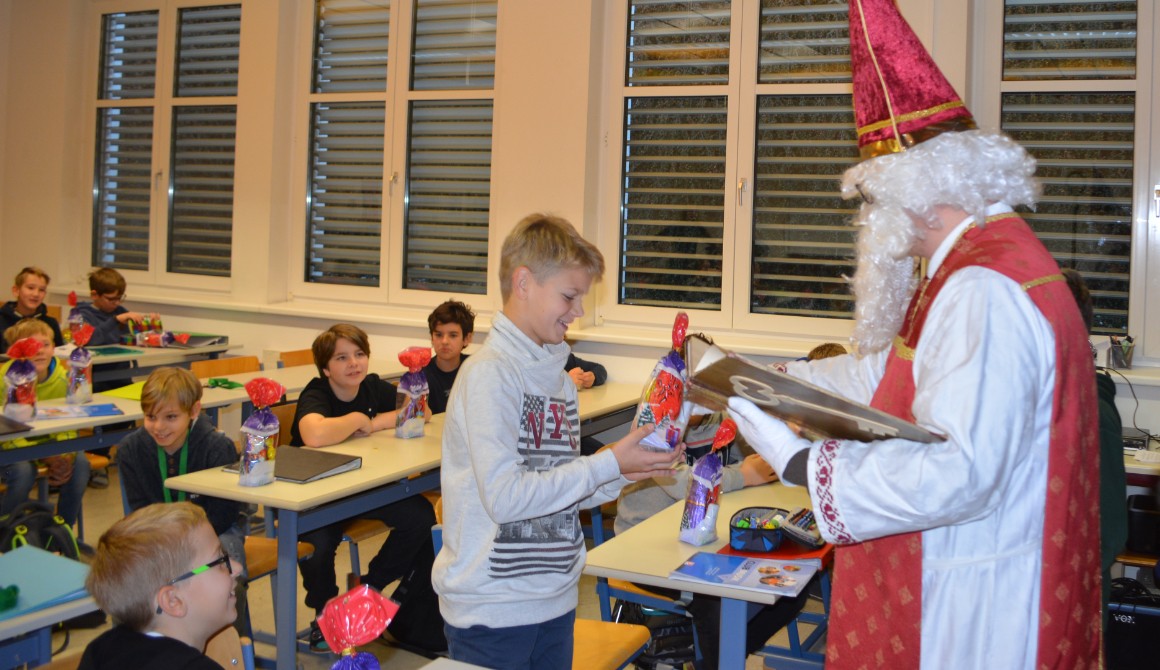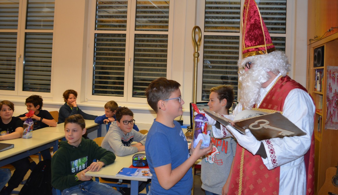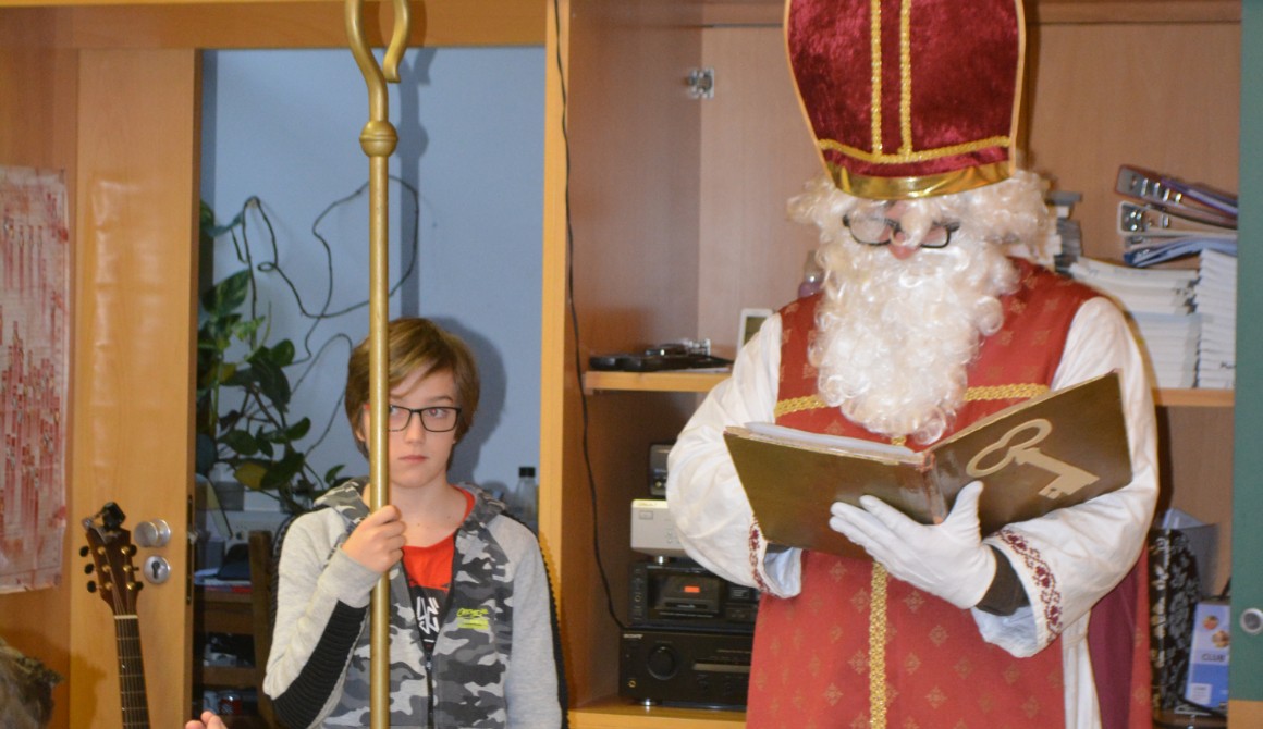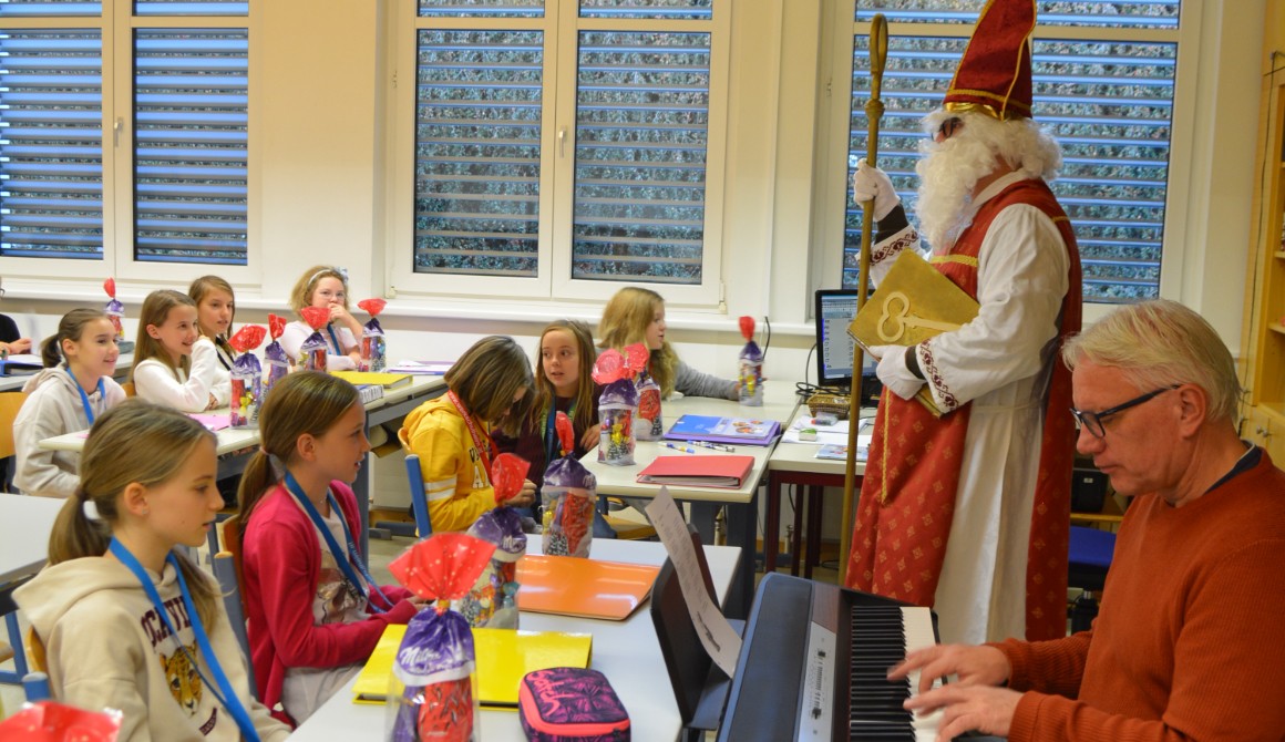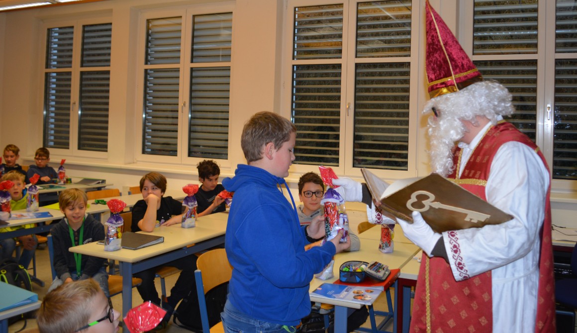 Die Schülerinnen und Schüler der 1. Klassen empfingen am 5. Dezember den hl. Nikolaus mit Gesang und Gitarrenklang. Musiklehrer Mag. Wolfgang Schneider hat extra für den Besuch des heiligen Nikolaus Lieder mit den Kindern einstudiert. Froh über den netten Empfang, erzählte er den Kindern eine Begebenheit aus seinem Leben und betonte die Bedeutung der Nächstenliebe. Jedes Kind durfte sich beim Nikolaus auch persönlich ein Sackerl mit Naschereien abholen. Anschließend, getragen vom fröhlichen Kindergesang, zog er wieder von dannen.