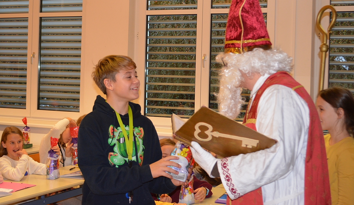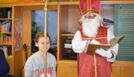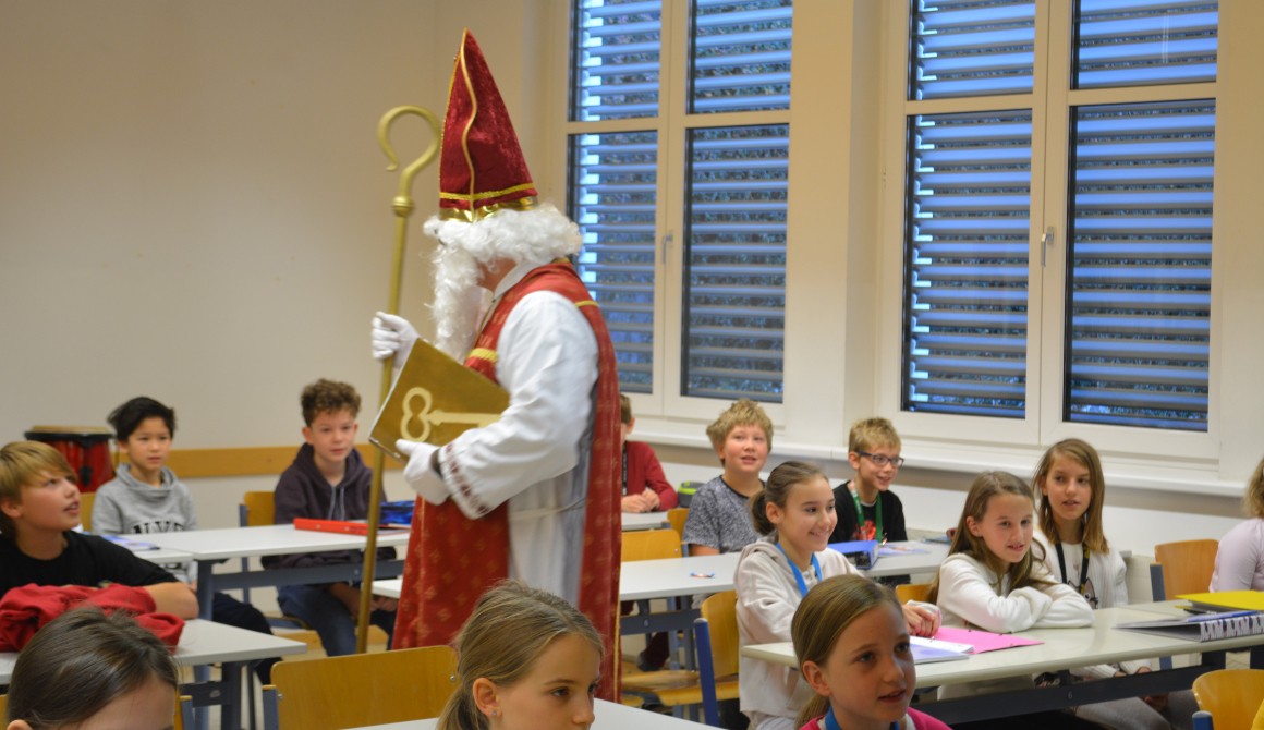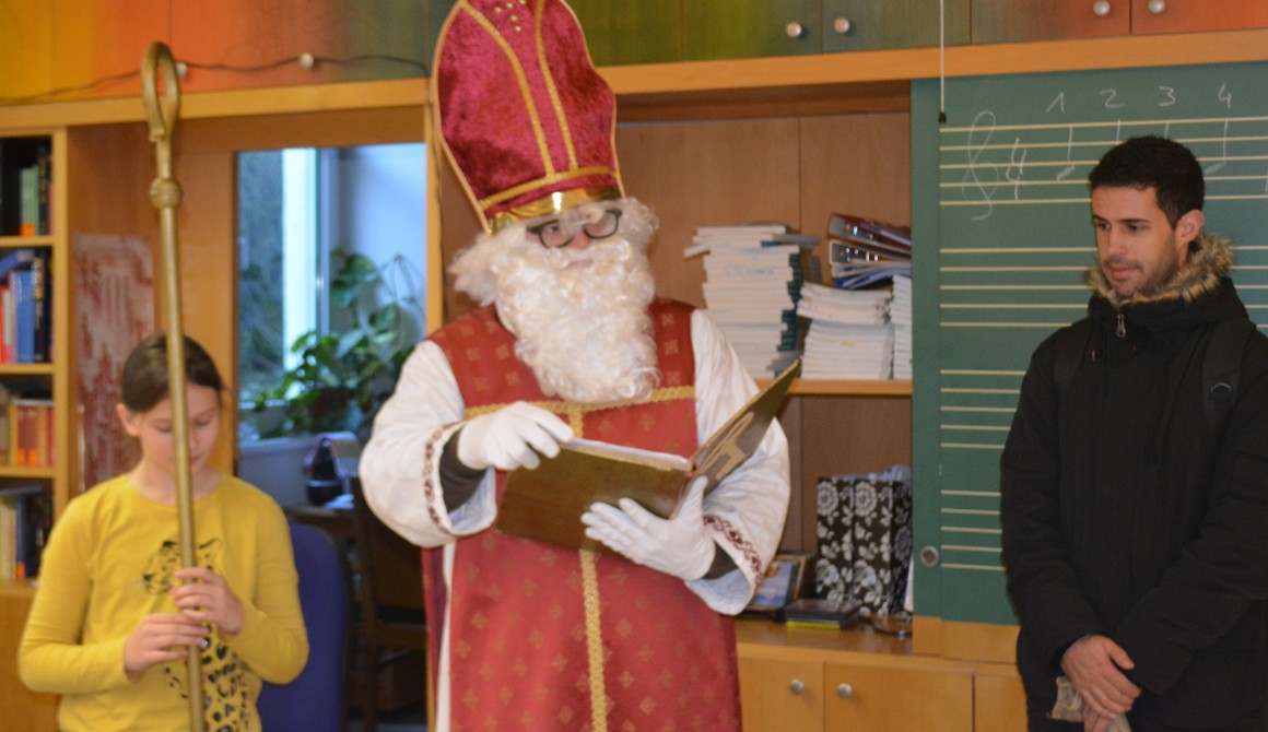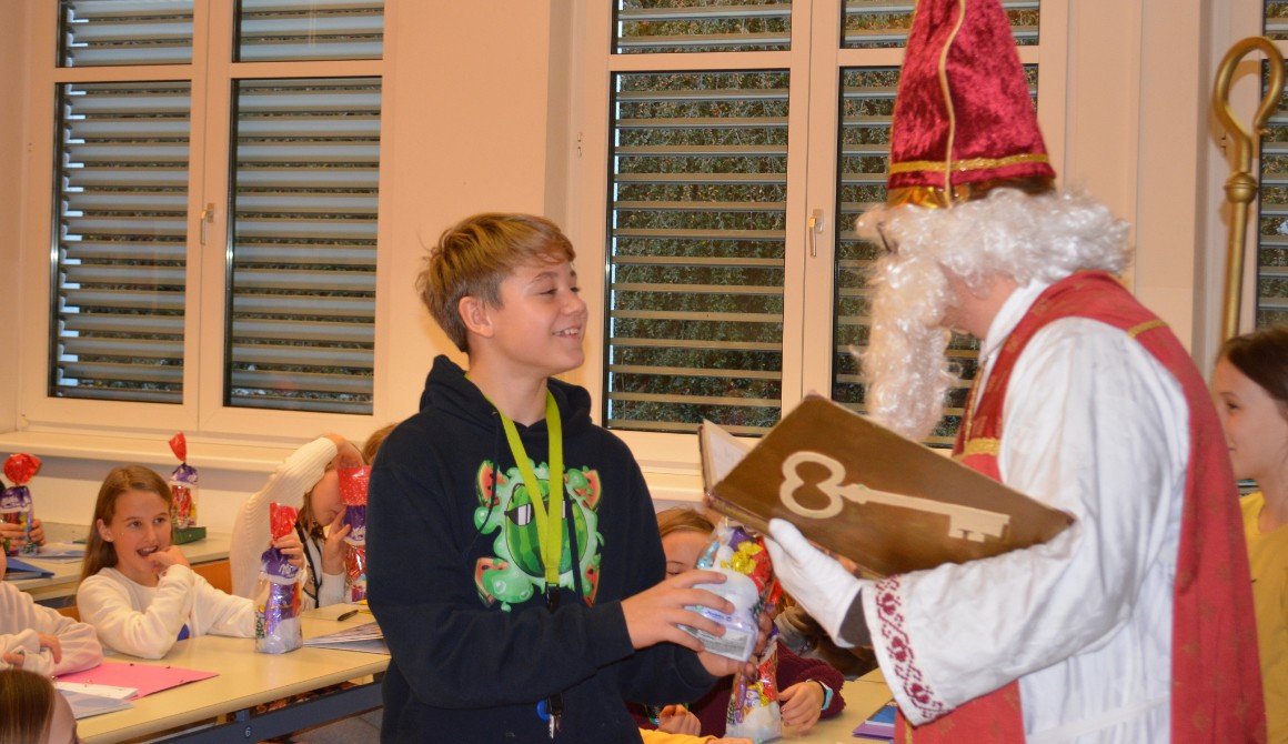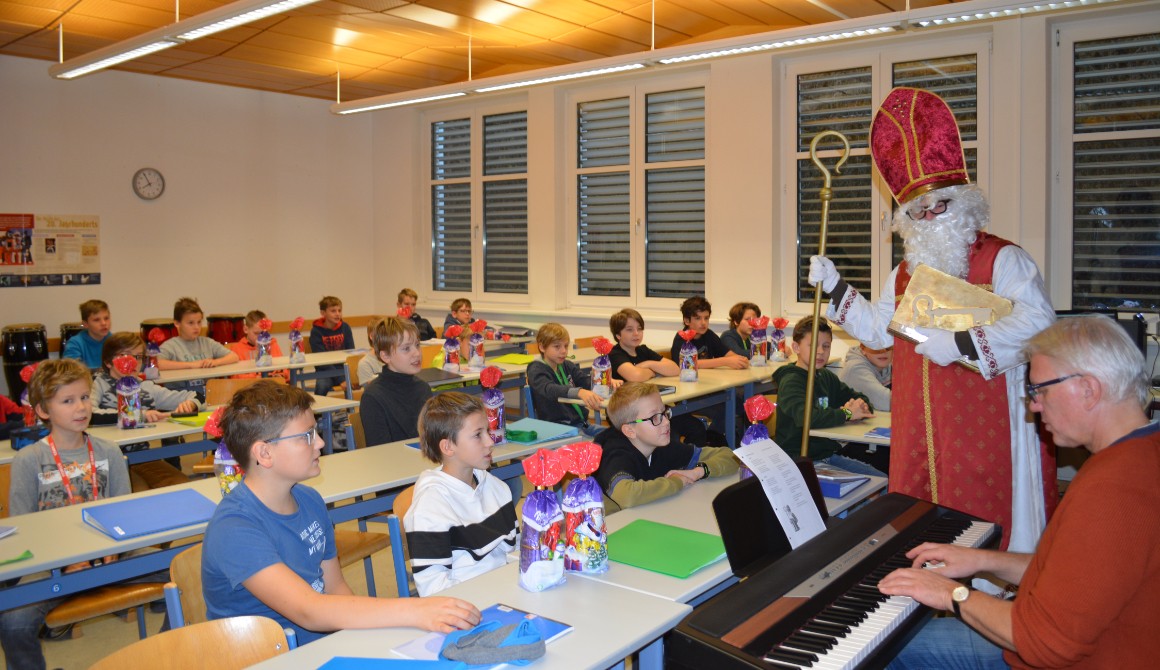 Die Schülerinnen und Schüler der 1. Klassen empfingen am 5. Dezember den hl. Nikolaus mit Gesang und Gitarrenklang. Musiklehrer Mag. Wolfgang Schneider hat extra für den Besuch des heiligen Nikolaus Lieder mit den Kindern einstudiert. Froh über den netten Empfang, erzählte er den Kindern eine Begebenheit aus seinem Leben und betonte die Bedeutung der Nächstenliebe. Jedes Kind durfte sich beim Nikolaus auch persönlich ein Sackerl mit Naschereien abholen. Anschließend, getragen vom fröhlichen Kindergesang, zog er wieder von dannen.