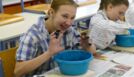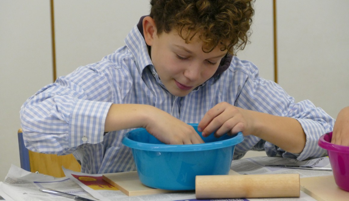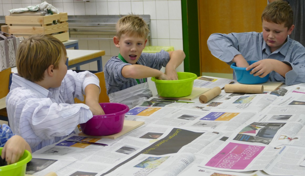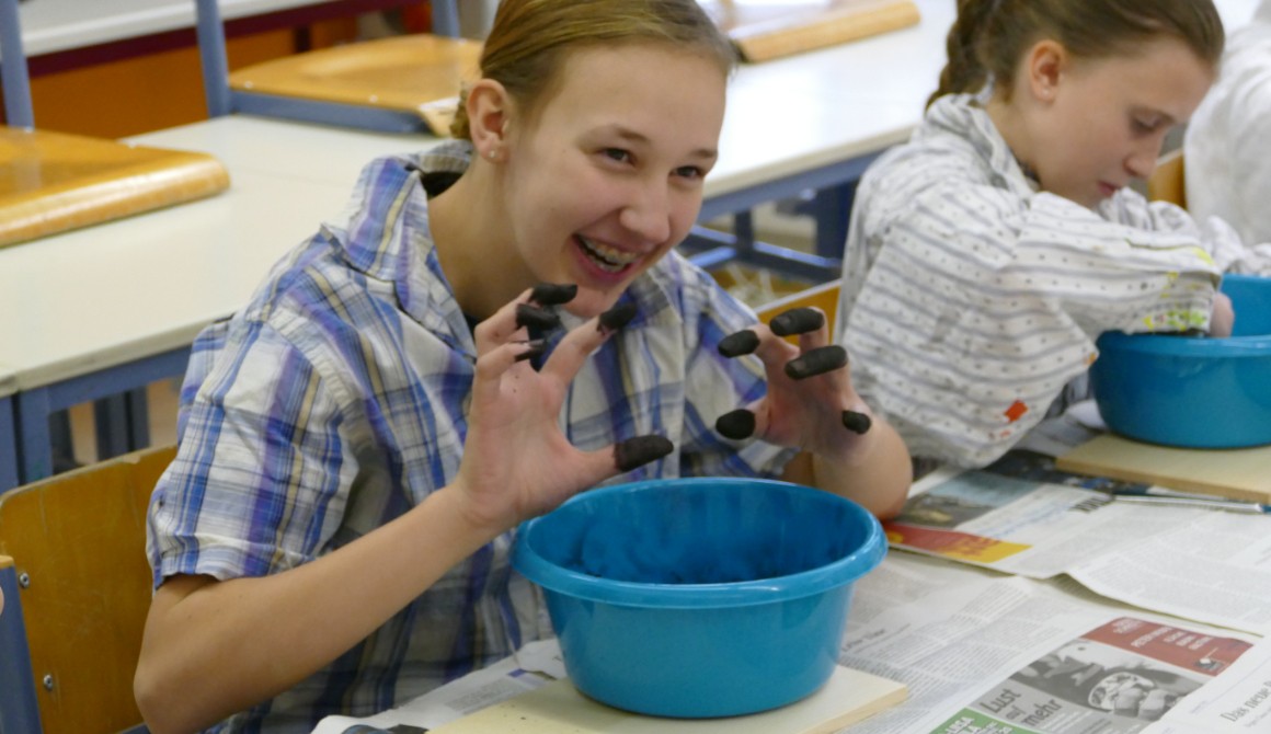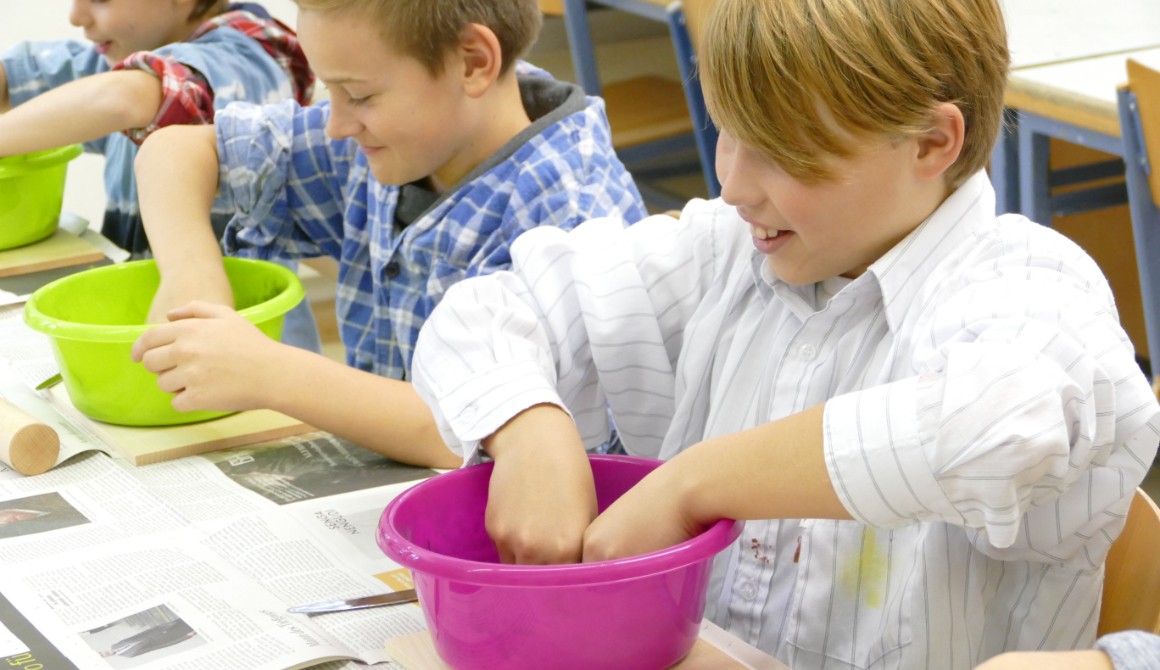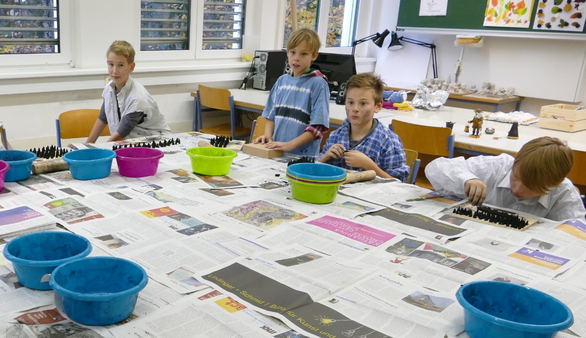 Die Schülerinnen und Schüler konnten ihre Kreativität beim Zusammenmischen der naturreinen Räucherstoffe unter Beweis stellen. Edelste Zutaten, wie orientalischer Weihrauch, Myrre, Sandelholz oder Fichtennadelpulver geben dem pechschwarzen Teig den aromatischen Duft beim Abbrennen der Weihrauchkerzen. Mit Eifer, großer Freude und handwerklichem Geschick wurde der Teig geknetet und zu kleinen Kegelchen geformt. Samt achtundzwanzig schwarzer Kinderhände, unzähligen Weihrichkarzl und einem vorweihnachtlichen Duft, der durch die Aula zog, ging der dreistündige Kurz zu Ende.