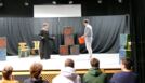 Am 3.2. 2023 spielte die 9A fünf Dramolette in einem „Kammerspiel“ im Studio vor ausgewähltem Publikum – gleichsam aus dem Deutschunterricht (Fr. Killingseder) heraus. Die Themen waren Hunger und Krieg, mit einem Auszug aus der sog. Trümmerliteratur, und Sozialkritik an unserer heutigen Gesellschaft, mit den Dramoletten des Kärtner Autors Antonio Fian. Die Schülerinnen und Schüler legten ihre Rollen aus der Aktion heraus an, schöpften daraus ein Gefühl und brachten dieses auf die Bühne. Sie ernteten dabei viel Applaus und fühlten sich in ihrer Intention bestärkt, Literatur auf diese Weise lebendig werden zu lassen…