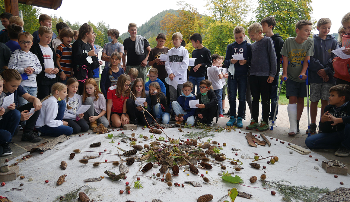 Zum gemeinsamen Abschluss fand am 4.Oktober 2021, dem Gedenktag des Hl. Franziskus, für alle Beteiligten eine kurze Besinnung statt. Diese wurde mit Beiträgen aus den ersten, dritten und fünften Klassen bunt gestaltet. Von den Jugendlichen wurden Lob- und Dankgedanken, ein Lied und eine Geschichte in die Feier eingebracht.