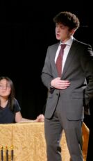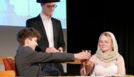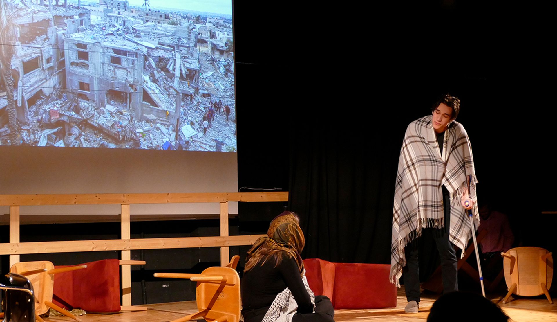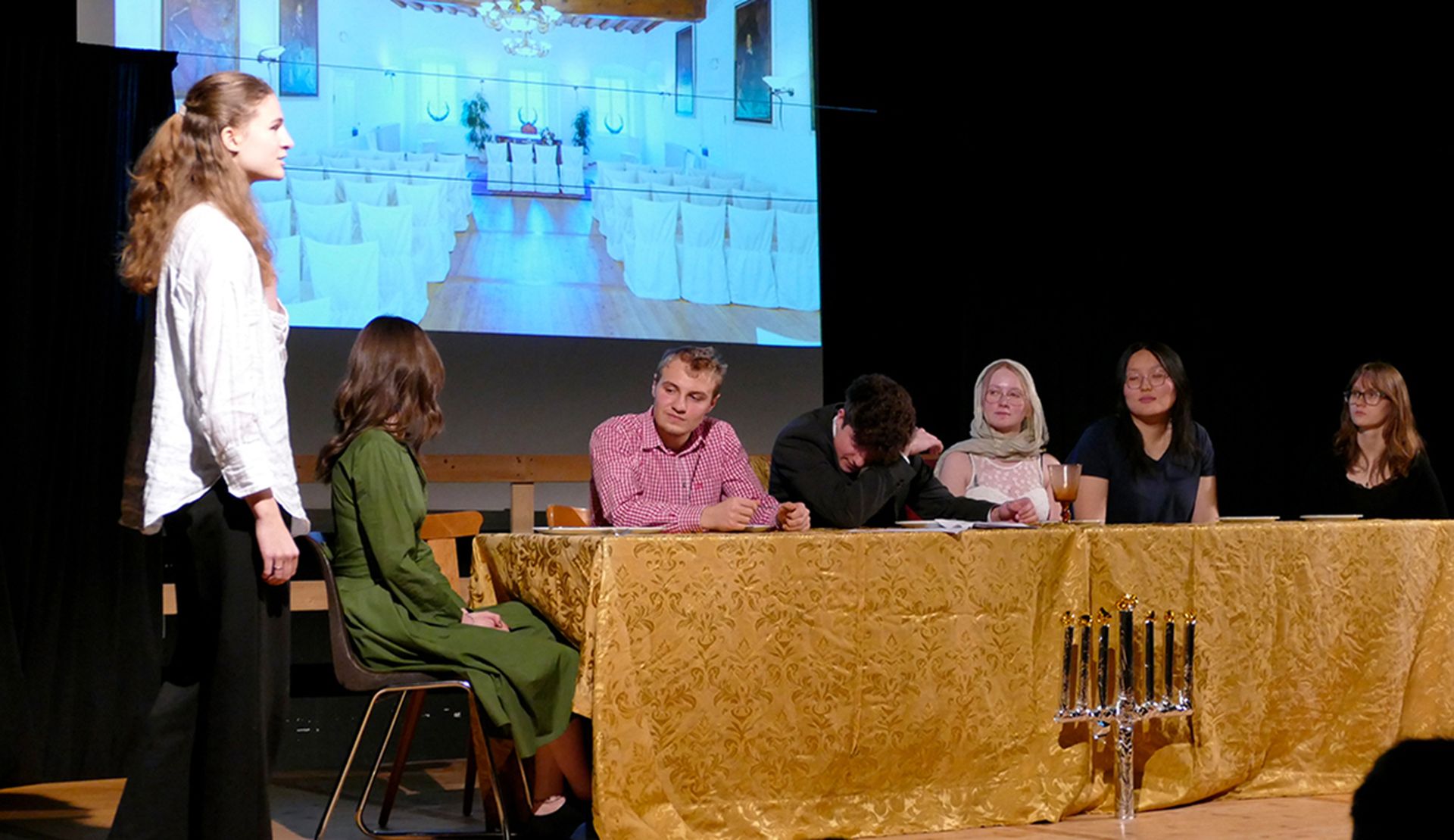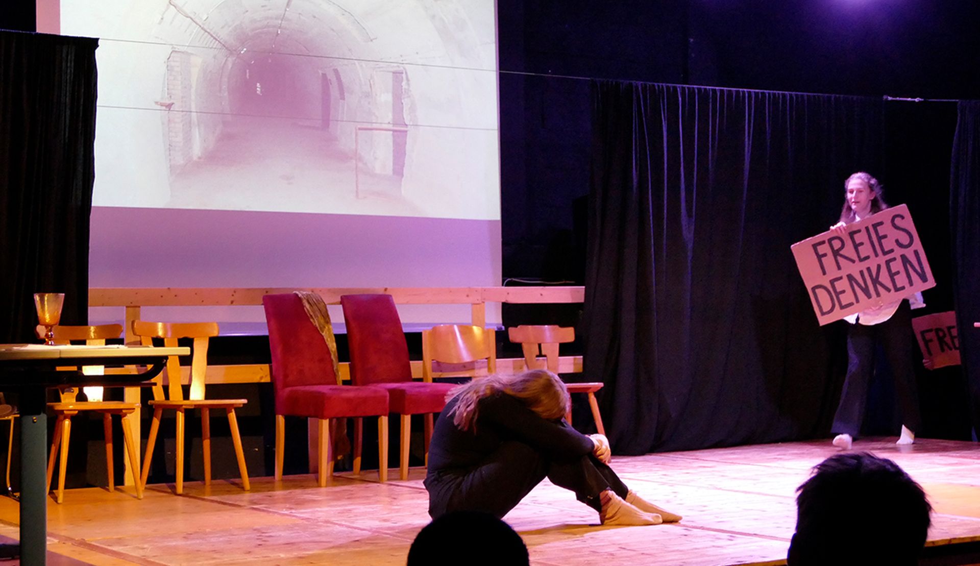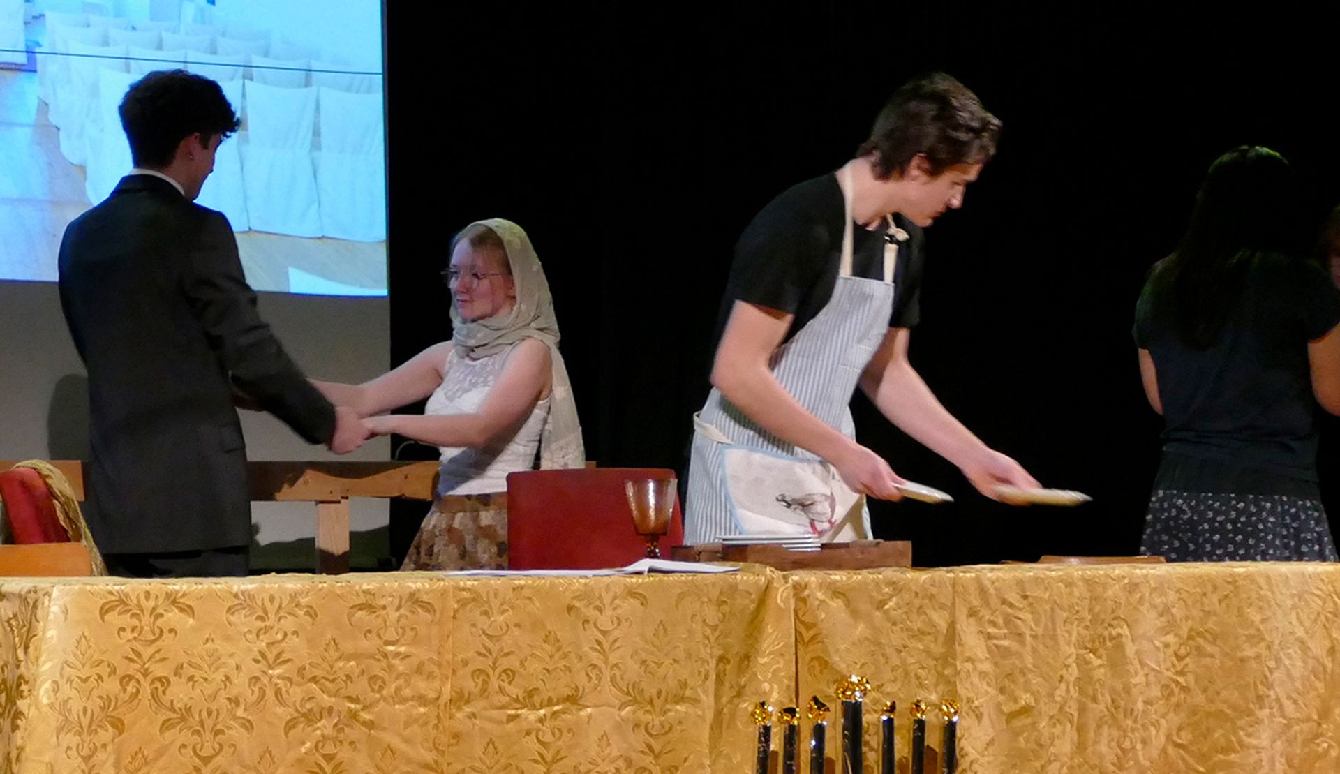 Die 9A brachte am 30. Jänner ein kleines Kammerspiel zu Aufführung. Initialzündung für die Idee war zum einen die NS-nahe Familiengeschichte des Altfelbertalers und Schriftstellers Martin Pollack, der vorige Woche mit 80 Jahren verstorben ist. Zum anderen war diese Woche der 80. Gedenktag des Holocaust. Im Zentrum steht eine jüdisch-christliche Hochzeit, die Anlass gibt die Täter- und Opferseite im 2. Weltkrieg zu beleuchten und die Verbindung zum heutigen Israel-Palästina-Konflikt herzustellen. An den Spielorten Israel, Österreich und Gaza werden die verschiedenen Perspektiven der Akteure dargestellt. Am schrecklichen Ende steht jedoch das Prinzip der Hoffnung, symbolisiert durch den Auftritt einer griechisch- mythischen Figur namens Kairos. Die Umrahmung bildet die Musik des jüdischen Künstlers Leonhard Cohen als auch jiddische traditionelle Musik – im Mittelpunkt steht jedoch die allseits bekannte Mauthausen-Kantate, die durch Mark und Bein geht …