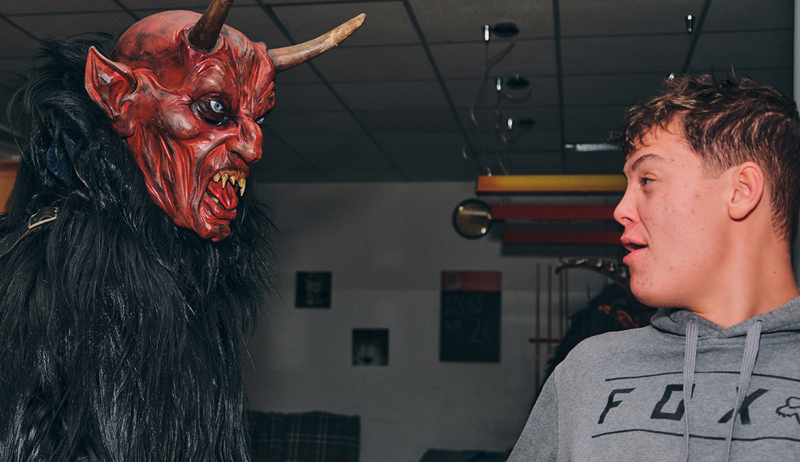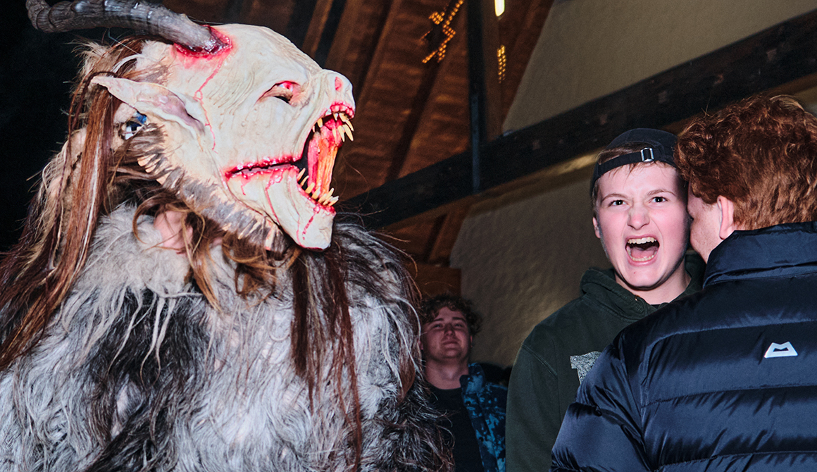 Am 6. Dezember kam das wilde Treiben mit den Perchten wieder ans Werkschulheim. Die Schafbergpass aus Sankt Gilgen und eigene Schülerperchten lehrten uns das Fürchten. Viele Besucher und unsere Schülerinnen und Schüler nutzten die Gelegenheit, bei Maroni, Punsch und kaltem und frostigem "Perchtenwetter" die schönen Masken zu bestaunen. Beeindruckt durch die Lichter, den Lärm der Glocken und Schellen und den einstudierten Bewegungen genossen viele den Lauf aus nächster Nähe. Anschließend amüsierte sich die Oberstufe im Zentrum beim traditionellen "Krampuskränzchen".