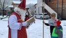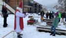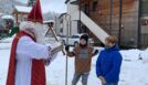 Jedes Kind wurde vom Nikolaus aufgerufen und mit ein paar Gedanken über seine Stärken und kleinen Schwächen bedacht. Die besonders Mutigen hielten trotz Anwesenheit der Perchten den Stab des hl. Nikolaus.