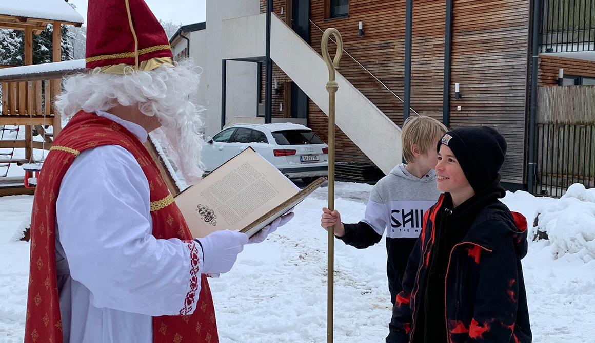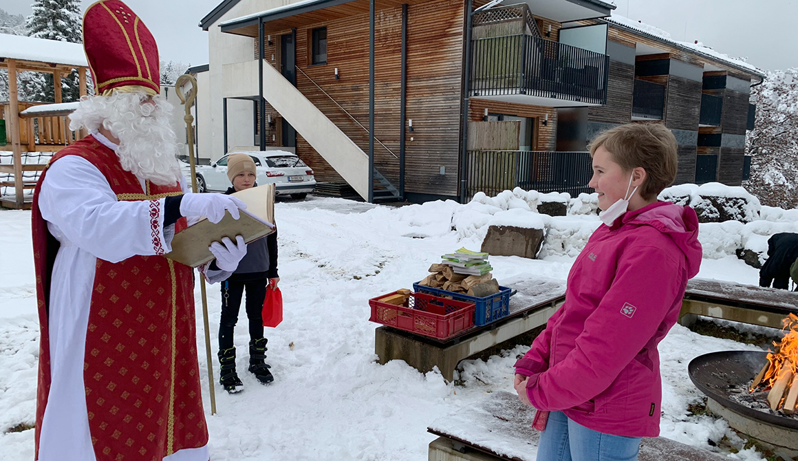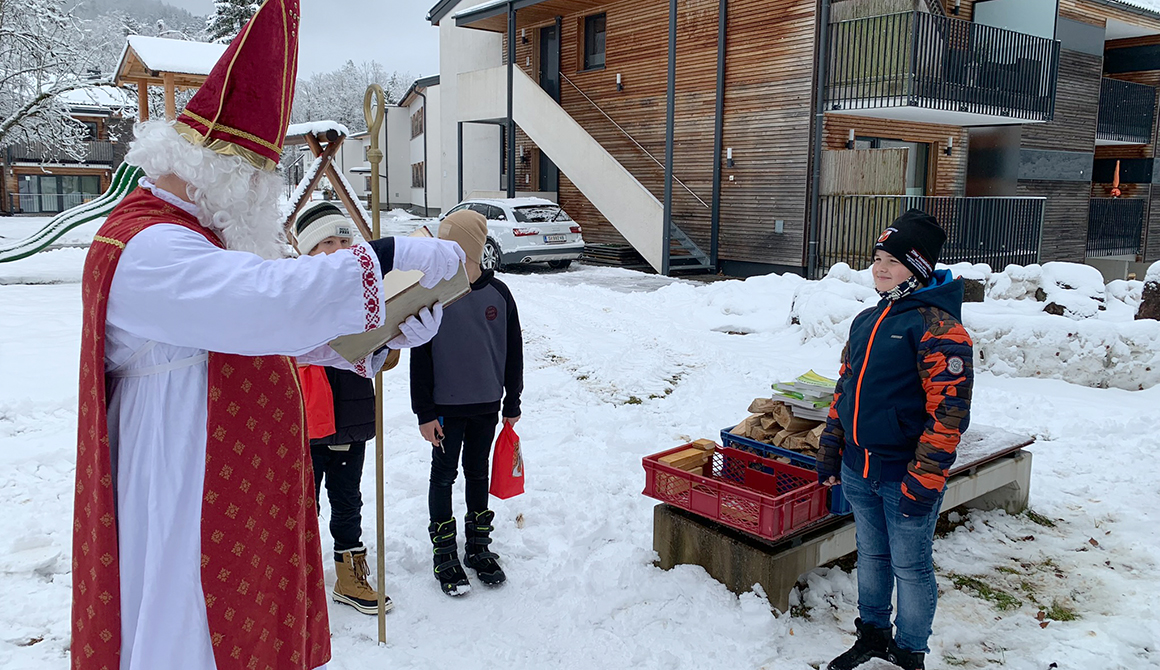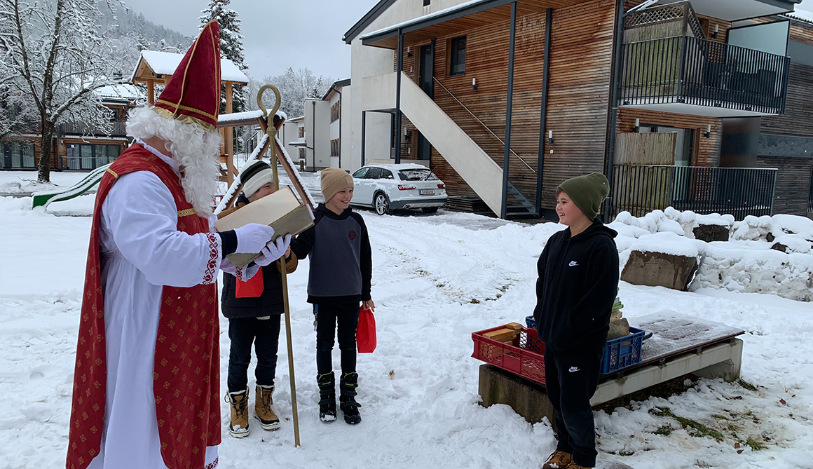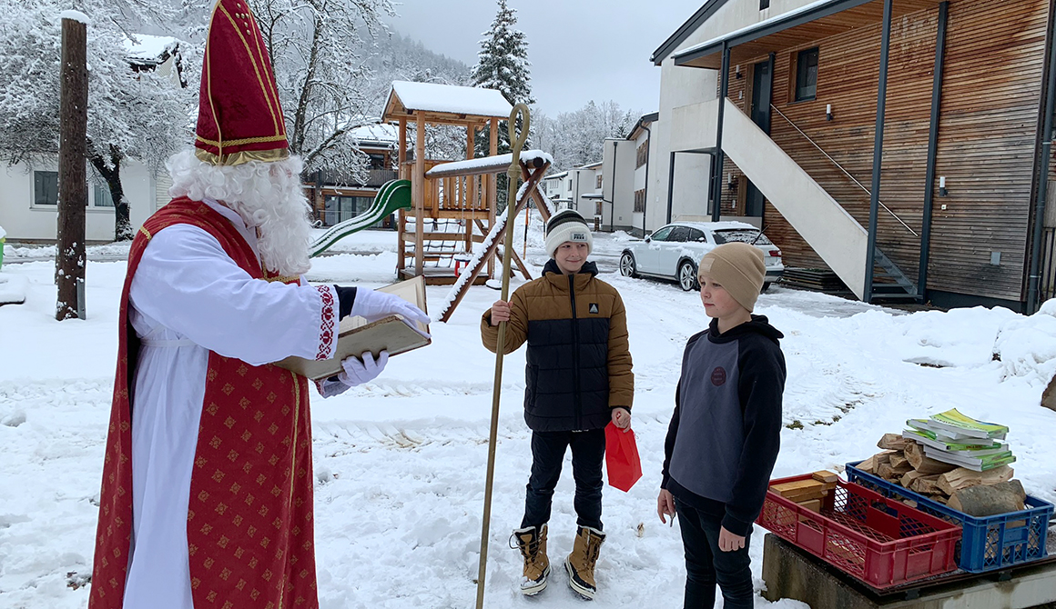 Im Rahmen des besinnlichen Advents am Werkschulheim, der mit der feierlichen Segnung unserer Adventkränze vor der Kapelle begonnen hat, ist am 6. Dezember auch der Nikolaus zu unseren Schülerinnen und Schülern der ersten Klasse gekommen.