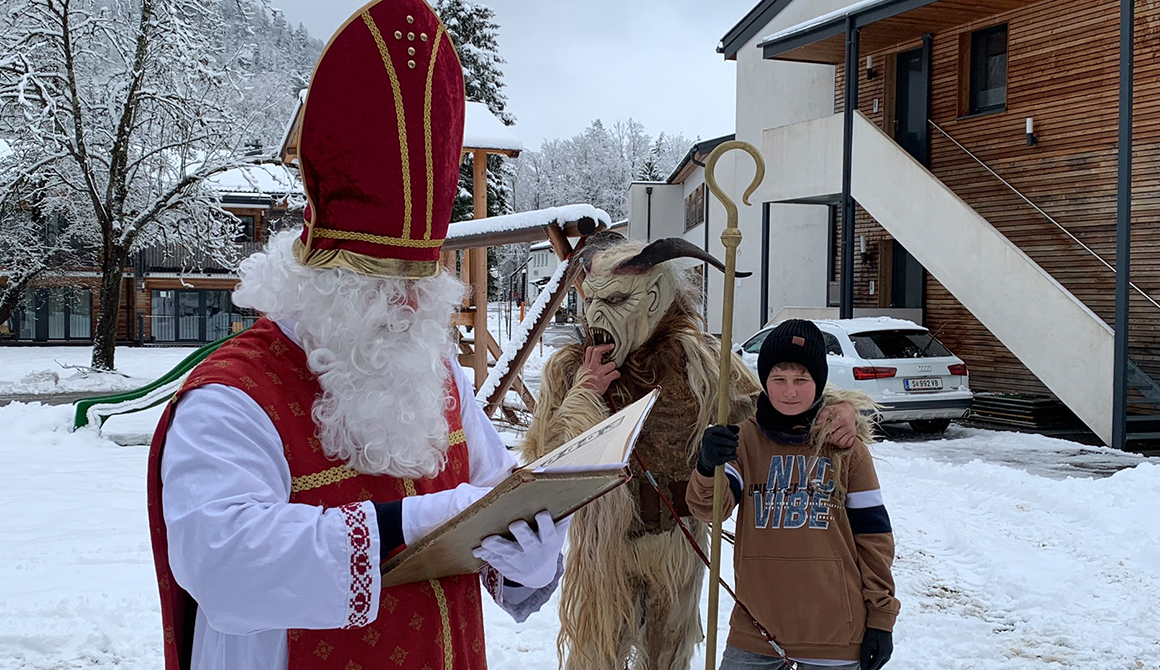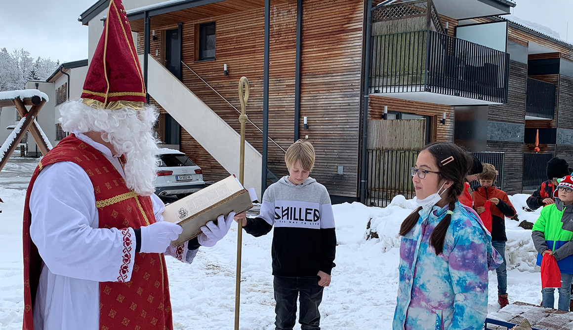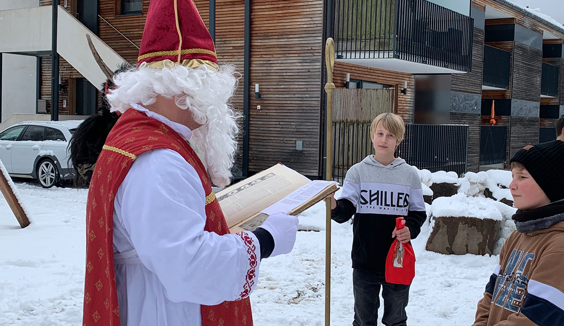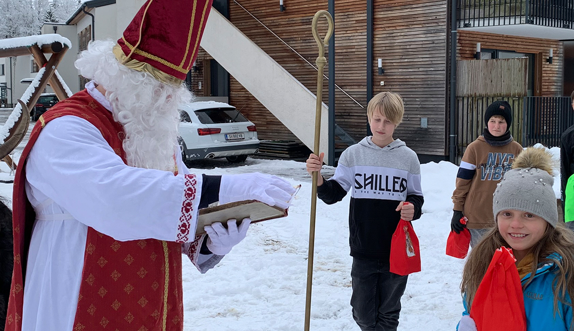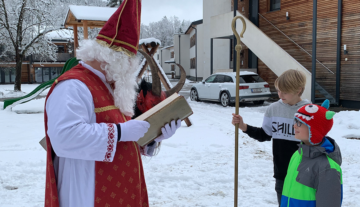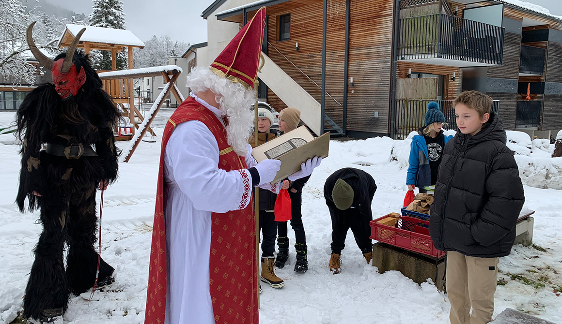 Im Rahmen des besinnlichen Advents am Werkschulheim, der mit der feierlichen Segnung unserer Adventkränze vor der Kapelle begonnen hat, ist am 6. Dezember auch der Nikolaus zu unseren Schülerinnen und Schülern der ersten Klasse gekommen.