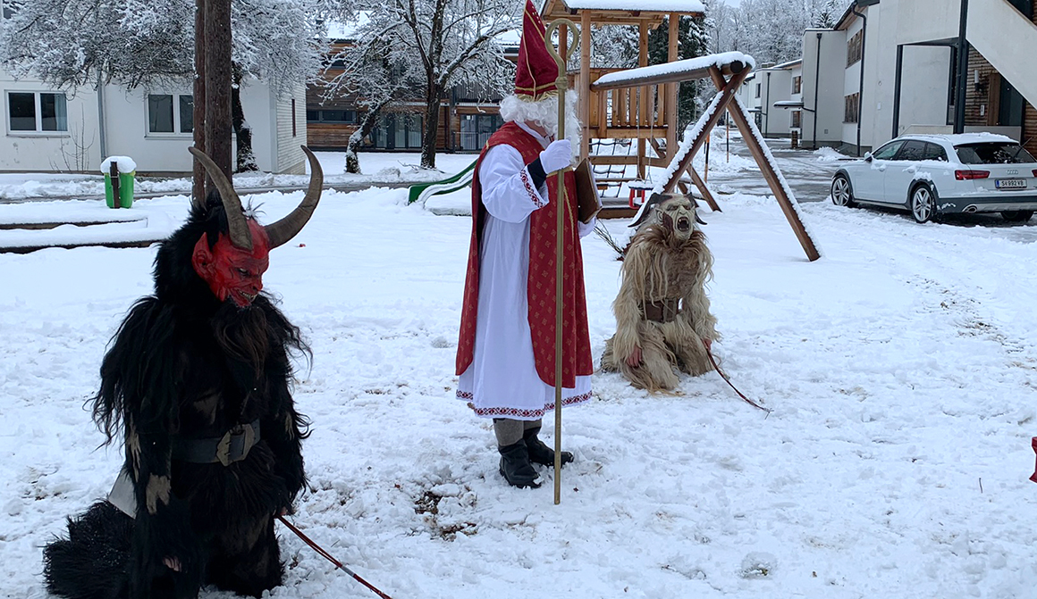 Leider konnte der traditionelle Perchtenlauf am Werkschulheim und das anschließende Krampuskränzchen für die Oberstufe im Zentrum auch in diesem Jahr Corona-bedingt nicht stattfinden. Weitere Adventveranstaltungen wie Weihnachts- Wortgottesfeier, Weihnachtsmusik vor der Kapelle durch unsere Bläserensemble, Weihnachtsessen und Weihnachtsfrühstück etc. können nur angepasst an die Rahmenbedingungen der vorgegebenen Covidmaßnahmen durchgeführt werden.