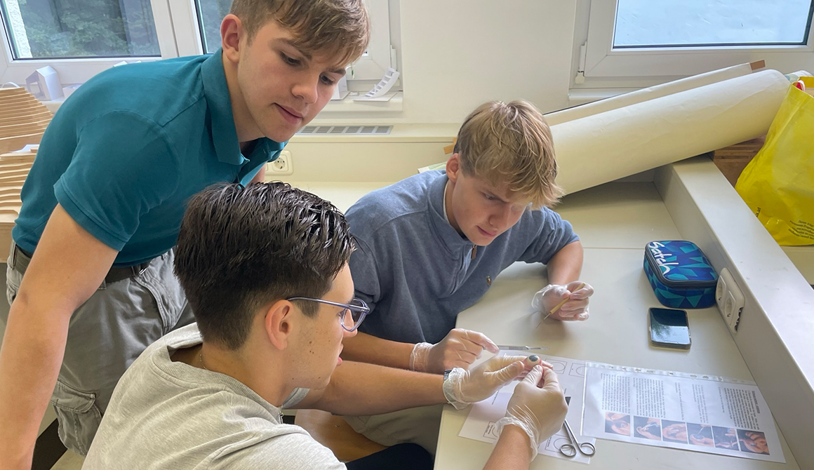 Zu Beginn des Schuljahres durften die Schülerinnen und Schüler der 7A und 7B zur Wiederholung des Themas „Sinnesorgane“ Rinder- und Schweineaugen sezieren. Dadurch konnte der anatomische Aufbau des Auges untersucht und dessen Funktionsweise anschaulich nachvollzogen werden.