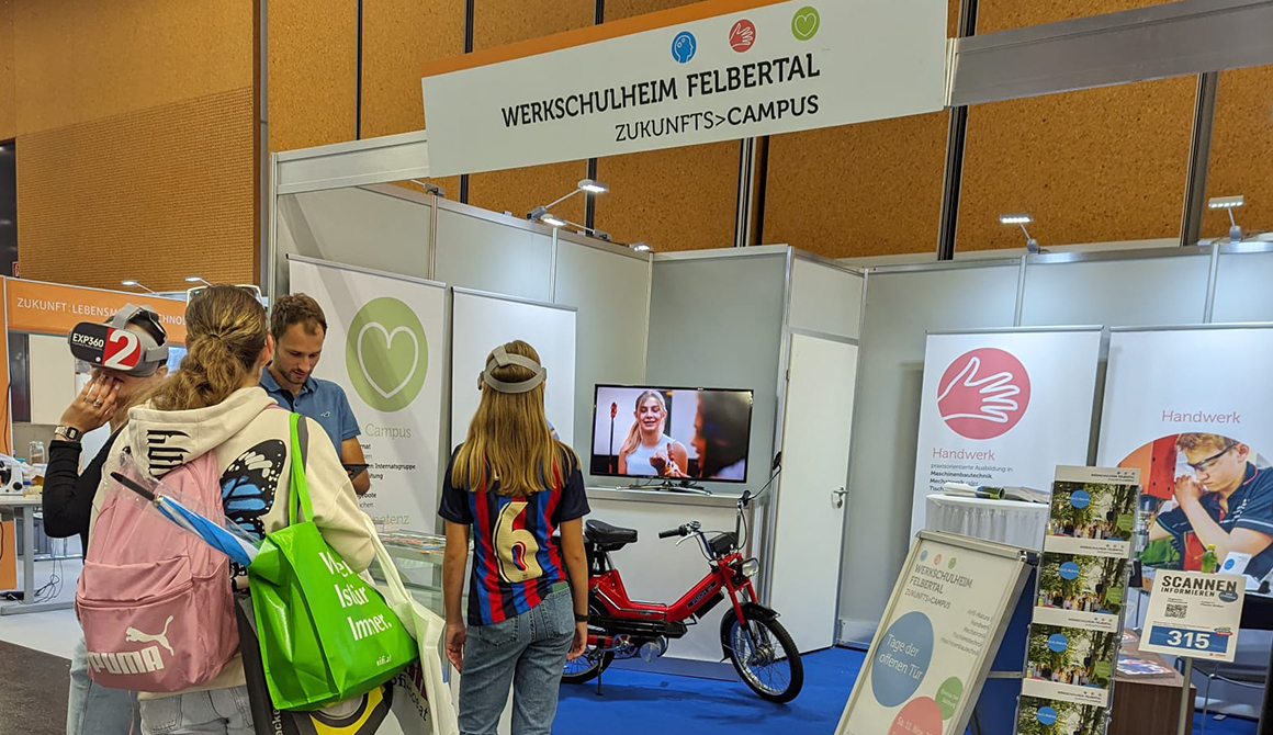 Das Werkschulheim Felbertal ist mit einem Informationsstand vertreten.