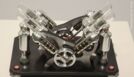 Das sind die ersten gezeigten Werkstücke: Ein 4-Zylinder-Stirling-Motor von Maschinenbautechniker Moritz Klingler, eine CD-Jukebox von Lisa Weißenbacher sowie ein Smart Toaster von Felix Leithner, beide aus der Fachrichtung Mechatronik.