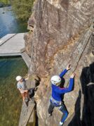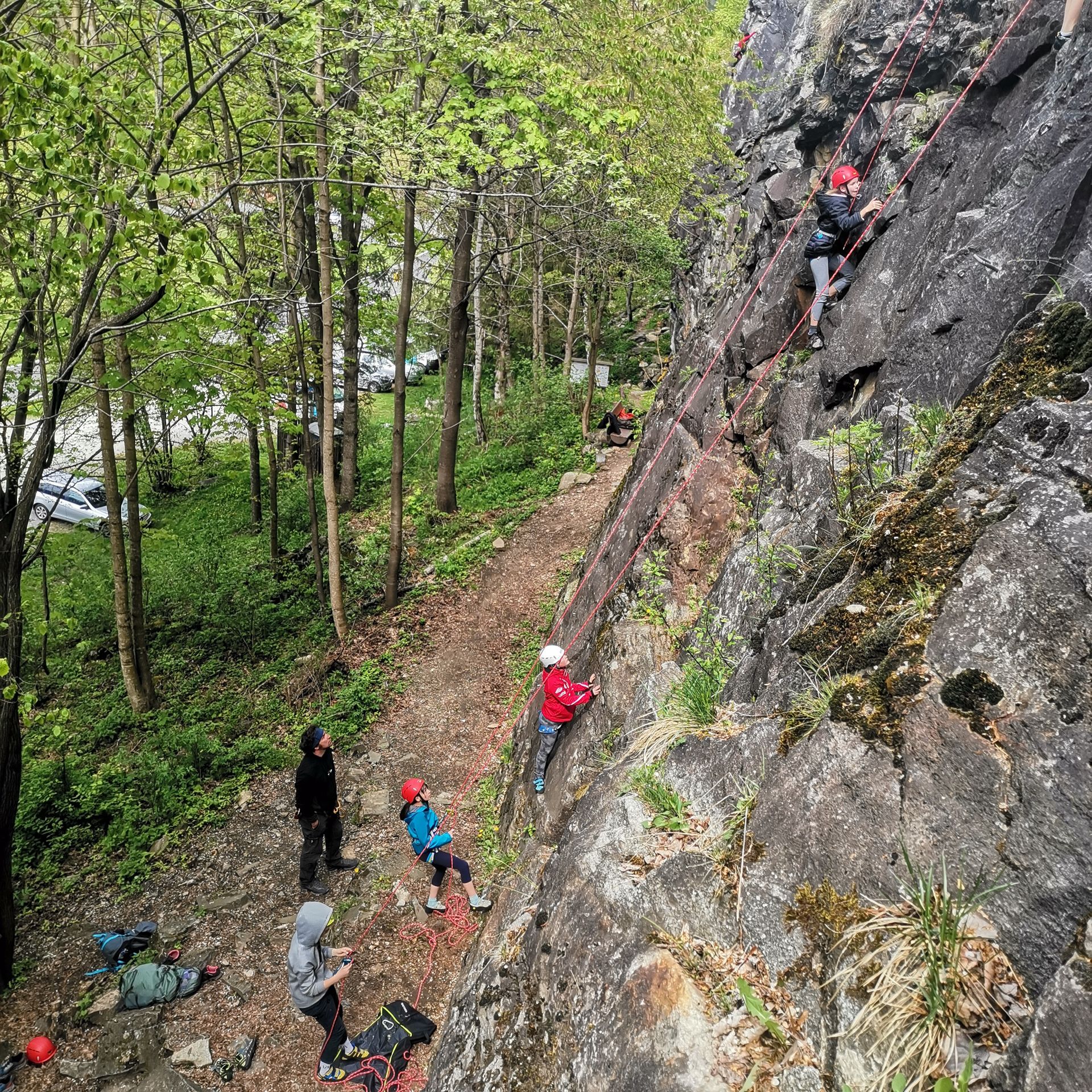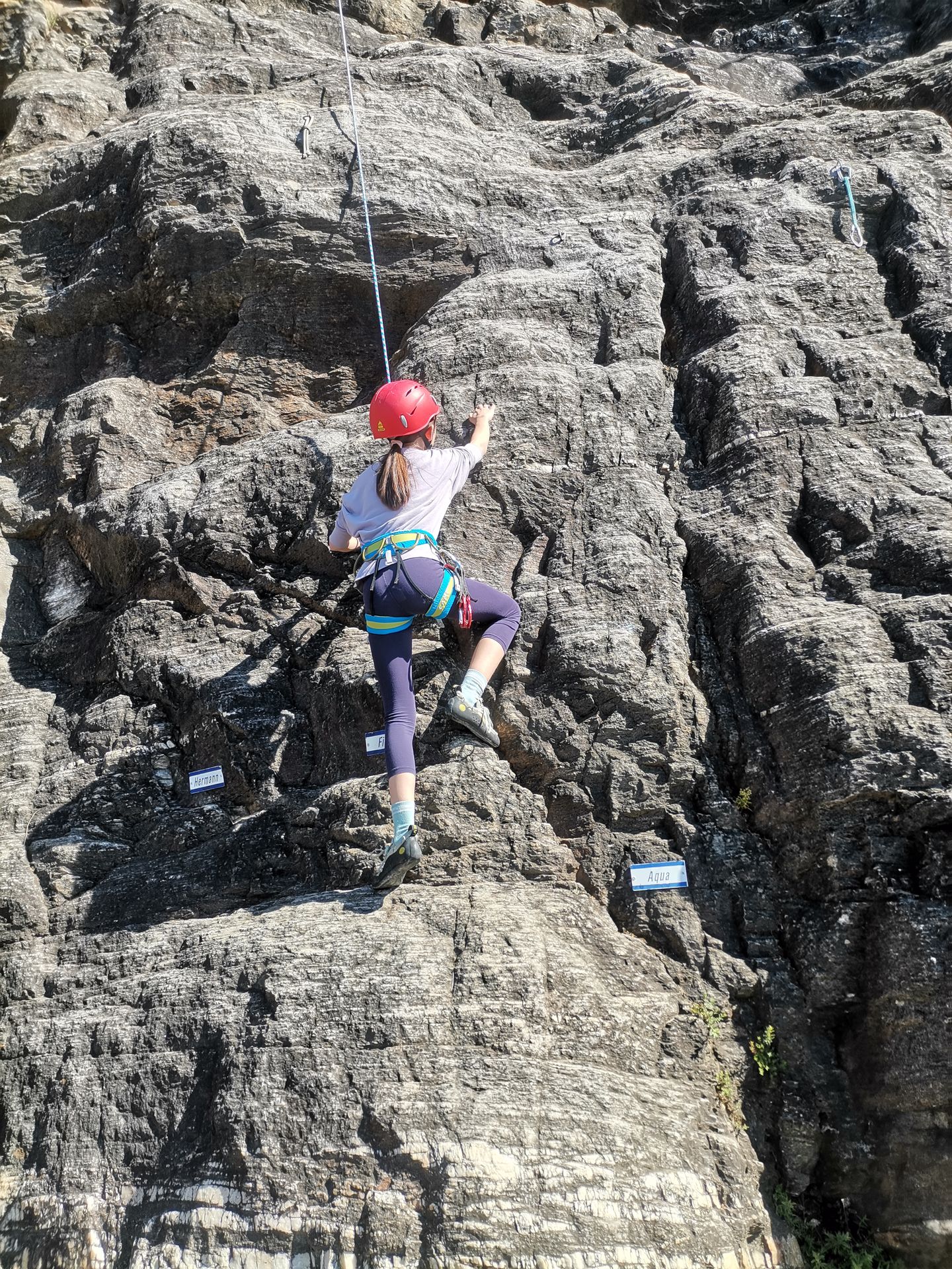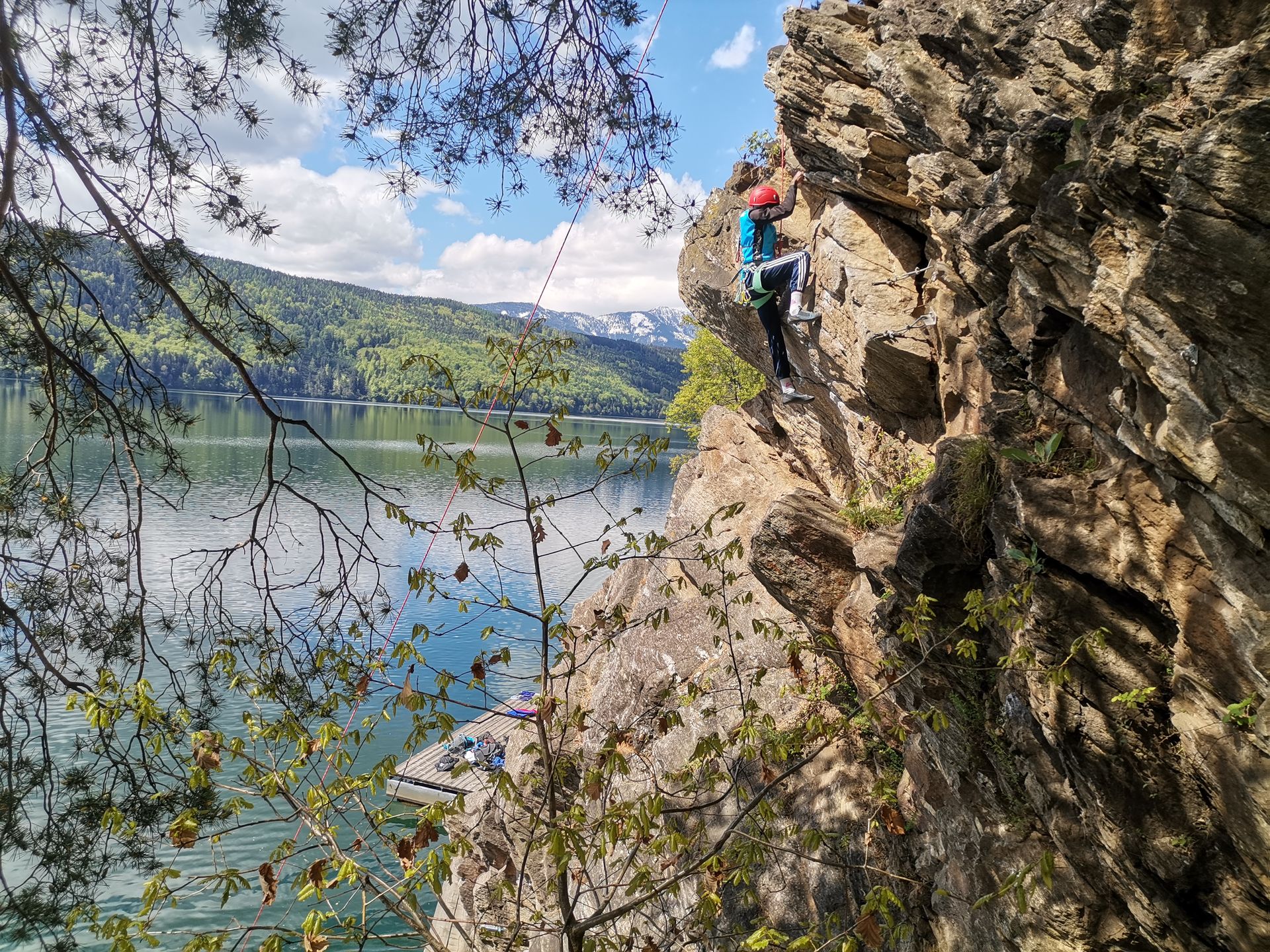 Ende April ging es mit unseren klettermotivierten UnterstufenschülerInnen nach Kärnten zum Sportklettern. Wir genossen drei Sonnentage beim Klettern am Millstättersee, bei der Skisprungschanze in Villach und im Maltatal. Besonders zu erwähnen sind unsere drei Zweitklasserinnen, die sich nicht nur geschickt beim Klettern anstellten, sondern auch sehr schnell das 1*1 des Kletterns erlernten - z.b. das direkte Einbinden mit gestecktem Achter, den Partnercheck oder das Sichern im Toprope samt Ablassen. Alles in allem drei gelungene Tage mit einer feinen Gruppe, an denen neben dem Spass auch die Lerninhalte nicht zu kurz kamen.