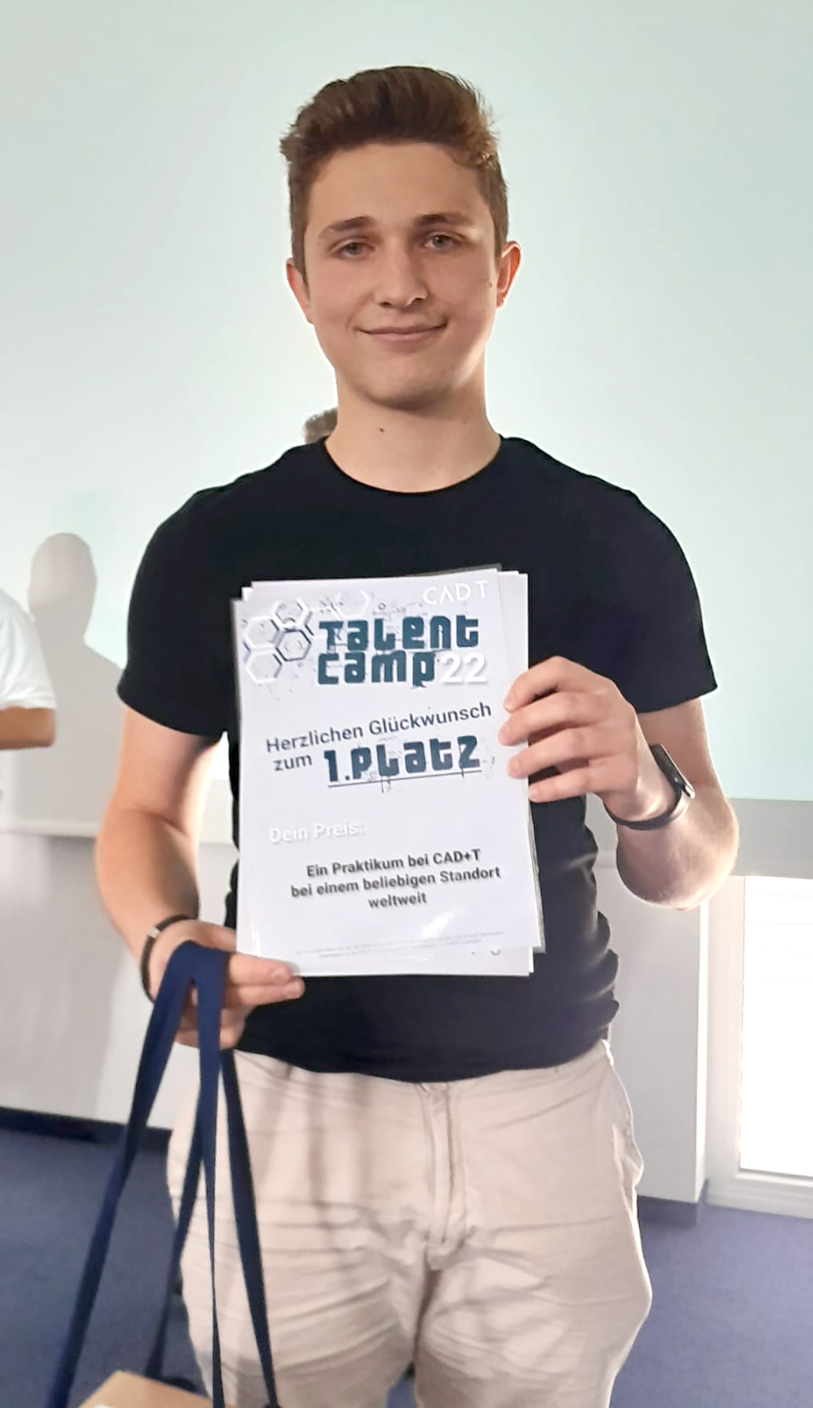 Als diesjähriger Sieger der CAD+T Challenge ging Ruben Abu Zahra vom Werkschulheim Felbertal aus Österreich hervor, der sich über einen Gutschein für ein Auslandspraktikum bei CAD+T in Australien, Dubai oder Südafrika freuen durfte.