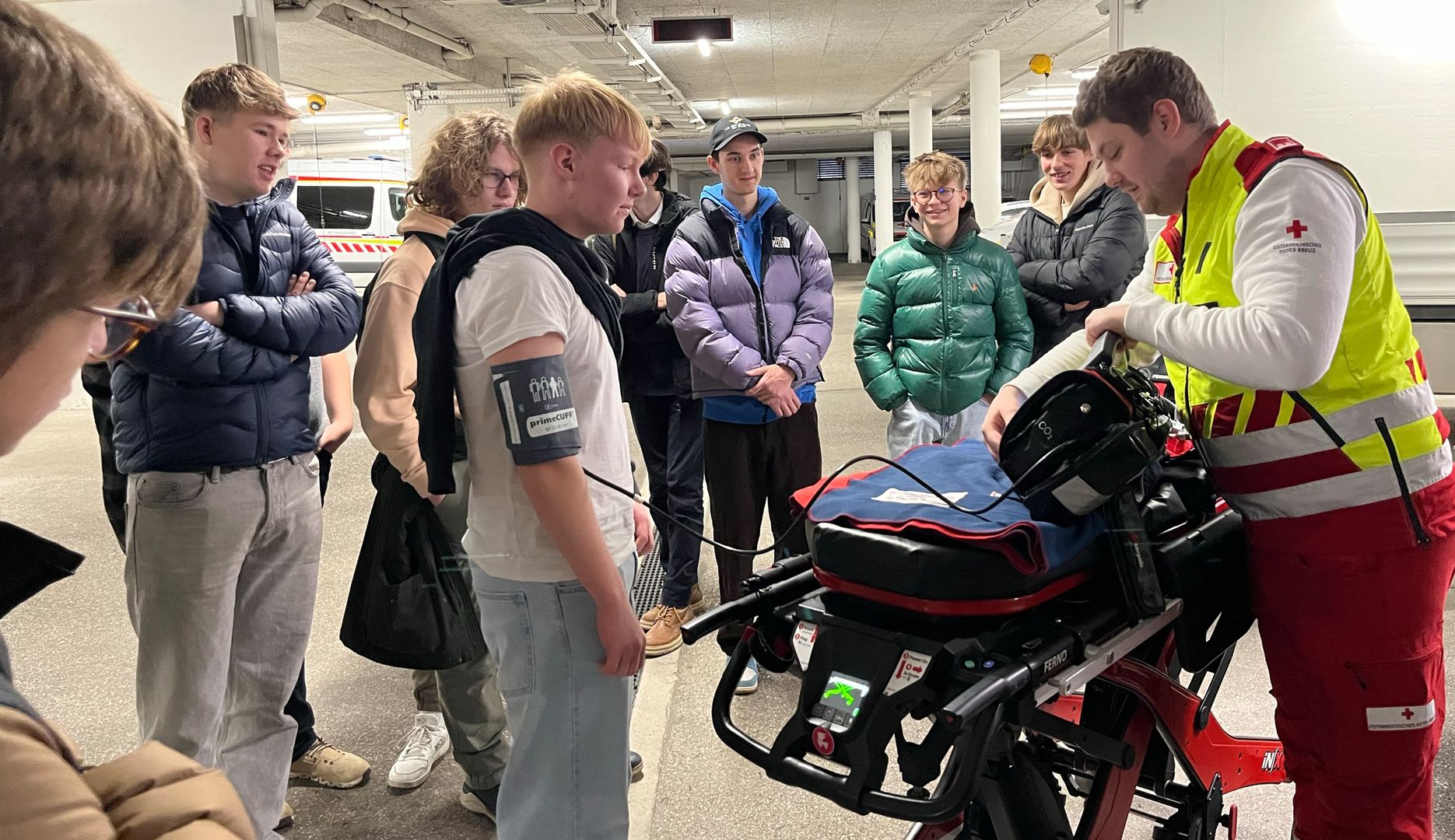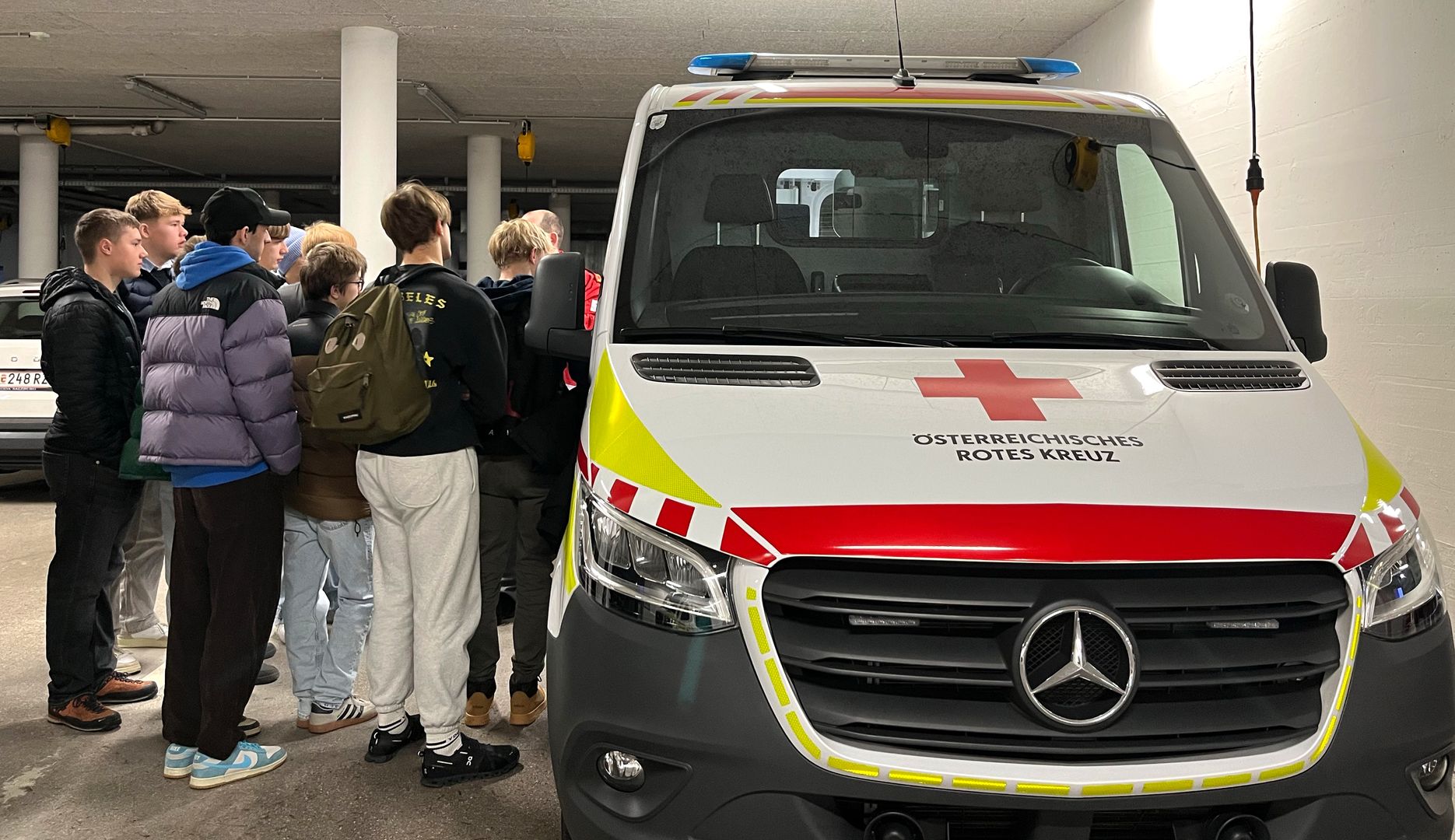 Der erste Teil der Exkursion führte die Jugendlichen zum Roten Kreuz. Dort erhielten sie einen umfassenden Überblick über die vielfältigen Aufgaben der Organisation. Besonders beeindruckt waren die Schüler von der Vorführung eines Rettungswagens. Ein Rettungssanitäter erklärte dabei nicht nur die technischen Geräte, sondern auch die Abläufe bei einem medizinischen Notfall. Die Möglichkeit Fragen zu stellen und einen Blick hinter die Kulissen des Rettungsdienstes zu werfen, hinterließ bei vielen einen bleibenden Eindruck. „Ich wusste nicht, wie viel Technik in einem Rettungswagen steckt und wie schnell die Sanitäter handeln müssen – das war echt spannend!“, berichtete ein Schüler begeistert.