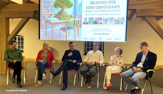 Am 19.09.2024 fand in der Salzburger Stieglbrauerei die 6. Leopold-Kohr-Summerschool statt, unter dem Titel „Bildung für eine genügsame Lebens- und Wirtschaftsweise“. Die vom namhaften deutschen Wachstumskritiker Niko Paech moderierte Veranstaltung widmete sich verschiedenen Lernorten, an denen man sich in Genügsamkeit üben kann. Neben Thomas Weiger, der Nachhaltigkeitskoordinator der Paris-Lodron-Universität Salzburg, Susanne Erhart und Andreas Auer vom Verein frauenanderskompetent und Christian Lorenz Müller dem Autor von „Die Radieschen-Revolution“ präsentierte unsere Kollegin Sarah Friembichler Bildungskonzepte, wie sie am Werkschulheim Felbertal gelehrt und gelernt werden. Neben zahlreichen Projekten mit Schülerinnen und Schülern wurde auch von einigen Initiativen im Bereich der Infrastruktur berichtet, die dazu beitragen, dass das Werkschulheim ein nachhaltiger Lernort ist und bleibt.